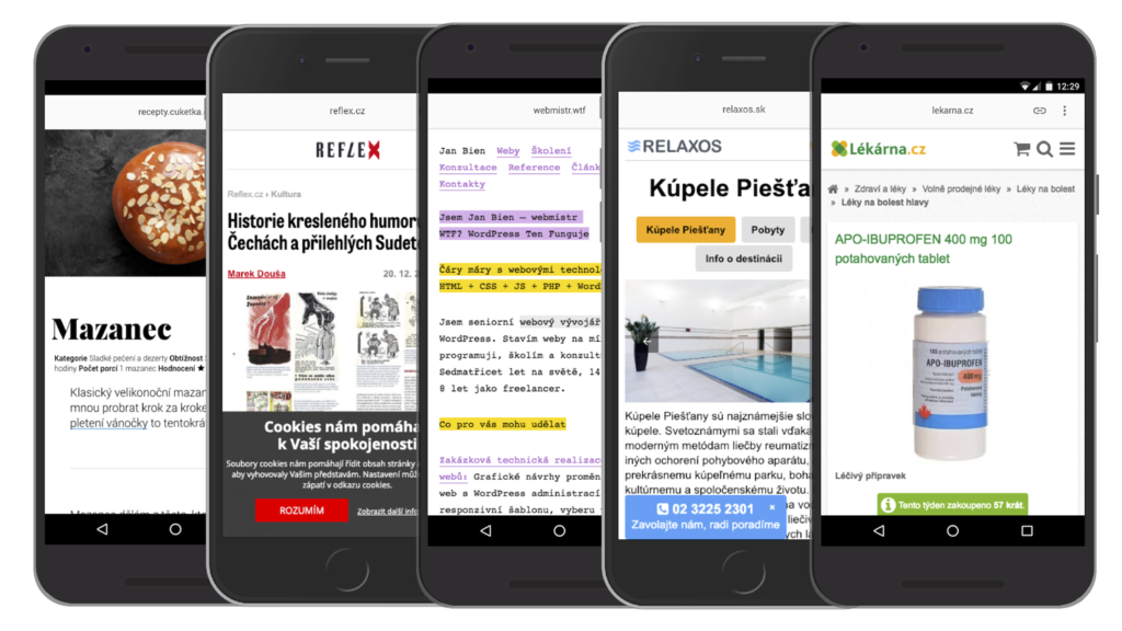 Cuketka.cz, Reflex.cz, Webmistr.wtf, Relaxos a Lékarna.cz – některé z českých webů, které AMP využívají.