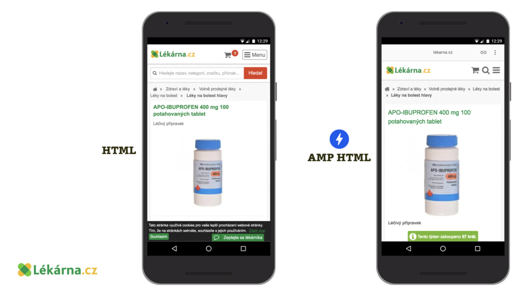 AMP tímto v poslední době rozšířilo pole působnosti směrem k dynamičtějším webům z oblasti e-commerce. Příkladem budiž česká Lékarna.cz.