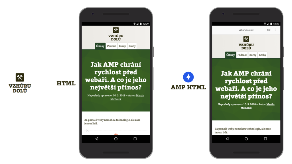 Vzhůru dolů má také AMP verzi. Ve skutečnosti je ovšem naprostá většina kódu pro obě stránky shodná.
