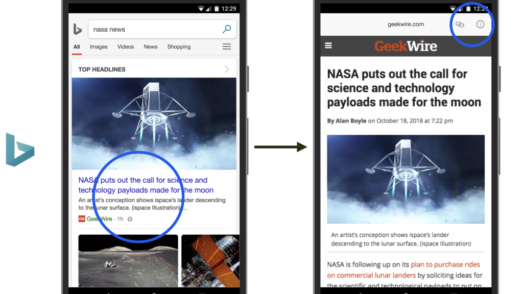 Vyhledávač od Microsoftu má v Česku jen miniaturní podíl na trhu, ale například v USA je důležitý. Nové využití AMP je vlastně velmi podobné tomu ve vyhledávání Googlu.