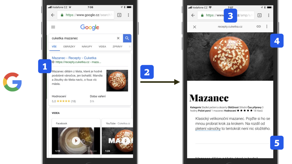 AMP verze receptu z Cuketka.cz ve vyhledávání Googlu.