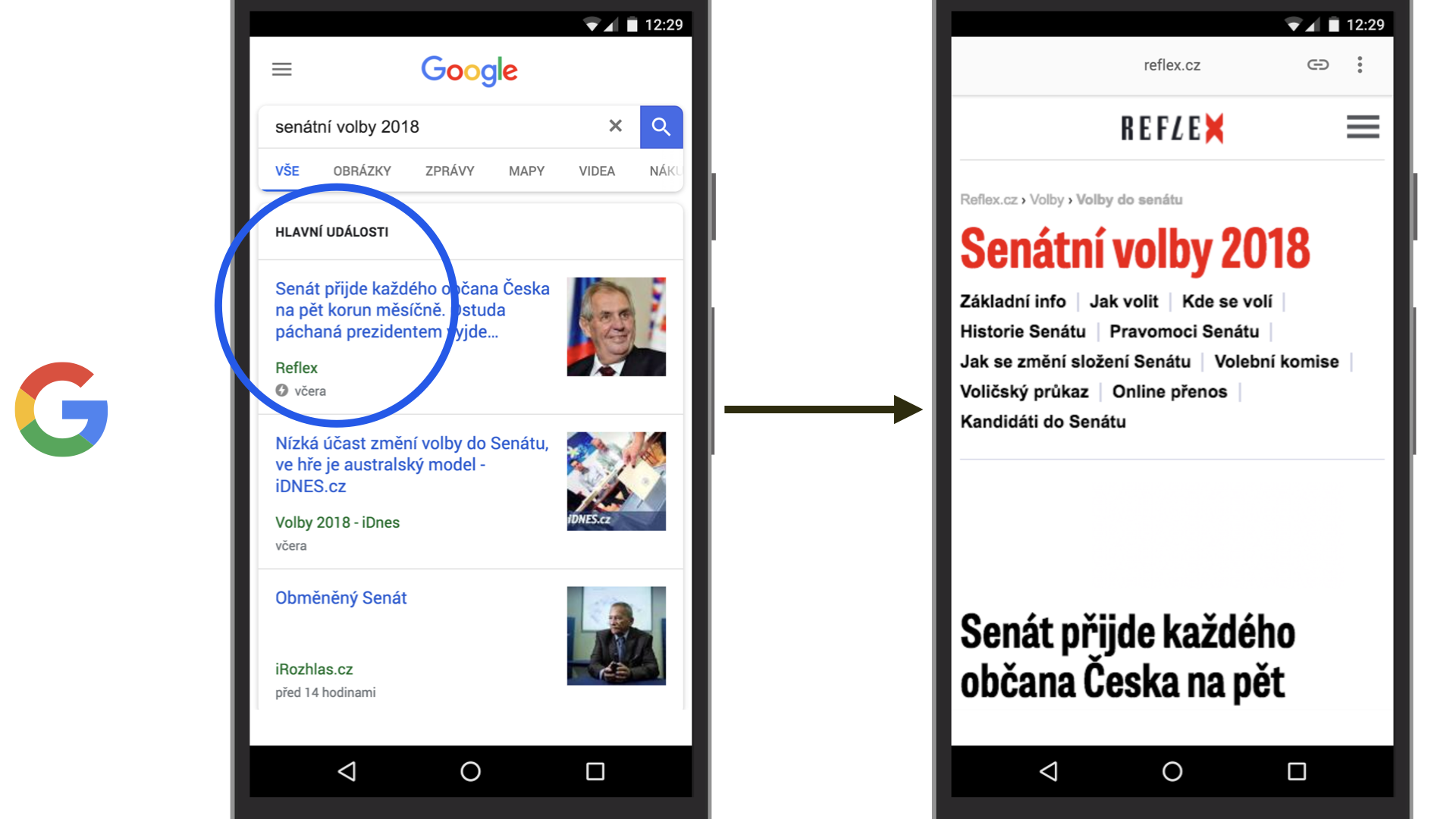 Jak to vyzkoušet? Zadejte si název nějaké aktuální zpravodajské kauzy do mobilního vyhledávání Googlu. Zřejmě uvidíte jen onen karusel, ale je možné, že tam budou prakticky jen výsledky ze stránek AMP.