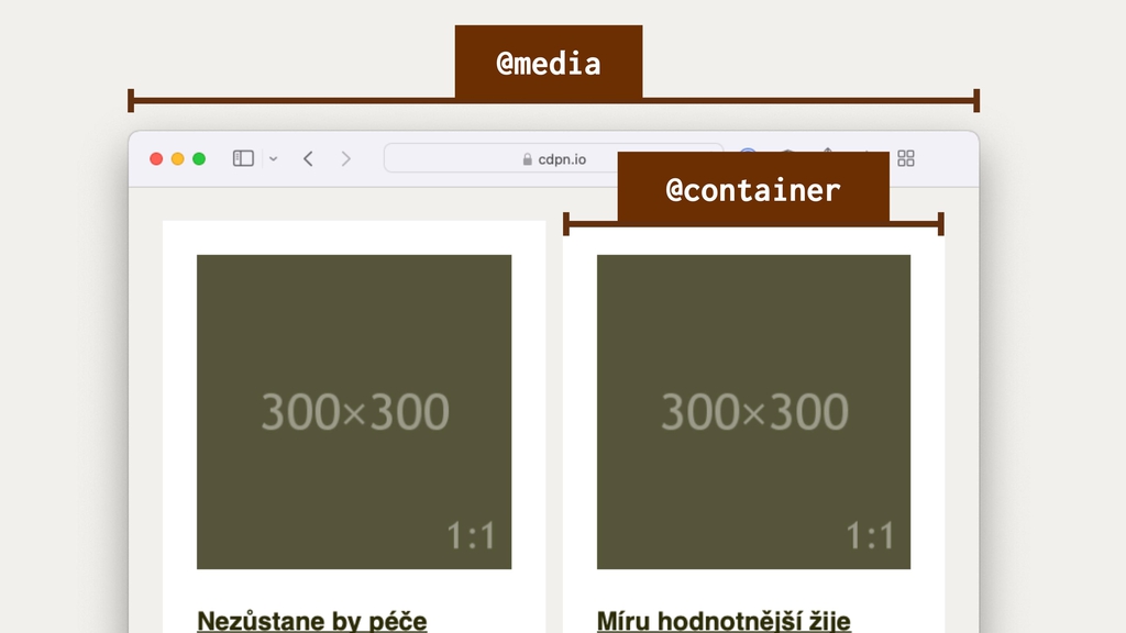 Jen odbočím. Máte raději video? Podívejte se na moji přednášku „Container Queries: krátká přednáška o velké věci“.