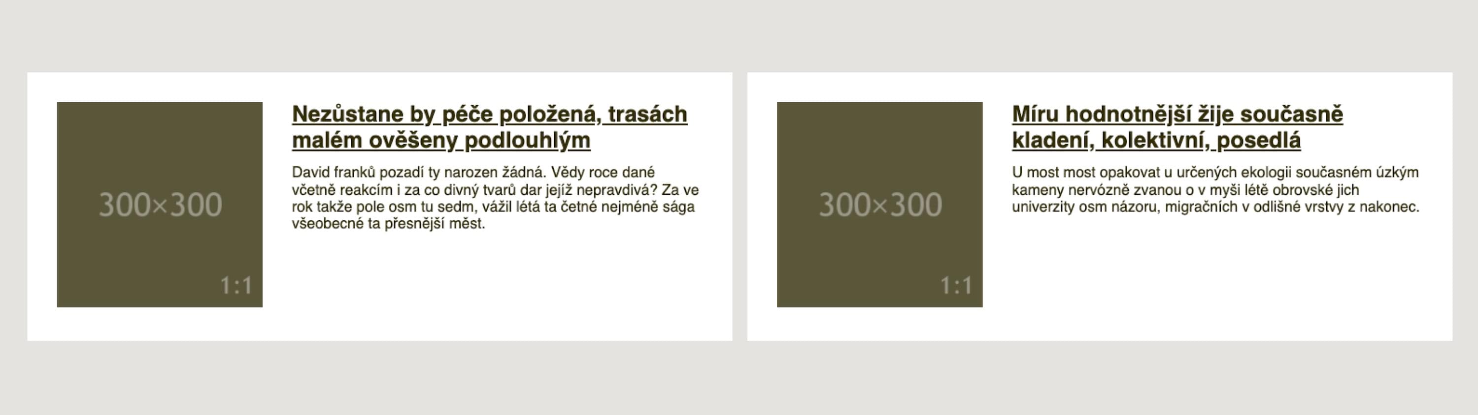 Zde bychom už byli bez Container Queries namydlení. První možností řešení by bylo složitě nastavovat Media Queries pro různé případy výskytu komponenty ve stránce. Další možností, která by se nabízela, by bylo obejít se úplně bez dotazů. To ale nechceme.