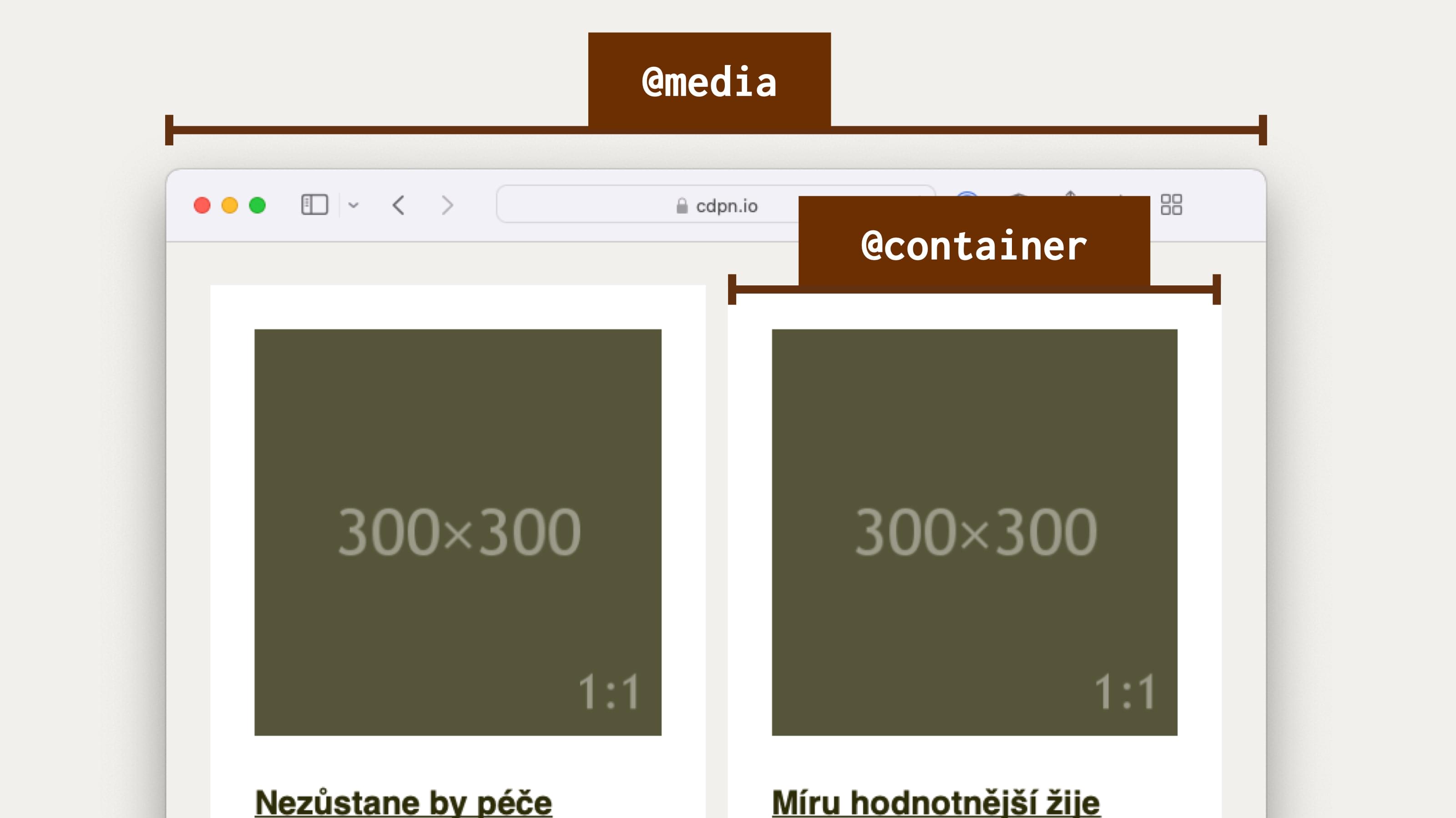 Container Queries, dotazy na kontejner (@container