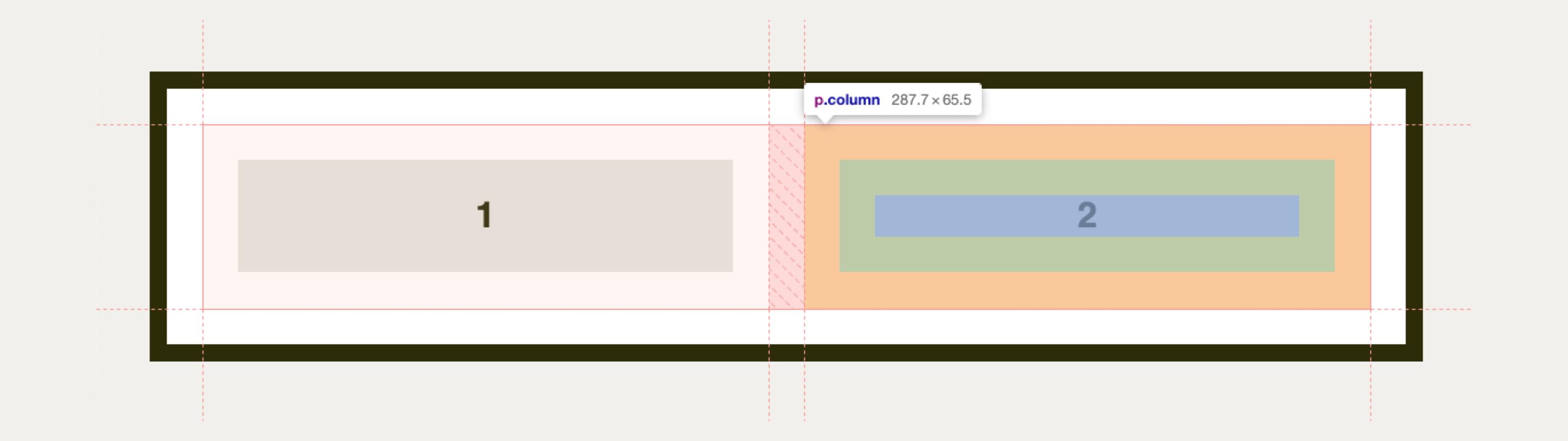 Ve vodorovném směru je to jednoduché – spočítá se deset procent ze šířky rodičovského kontejneru a tato hodnota se vloží jako mezera mezi prvky.