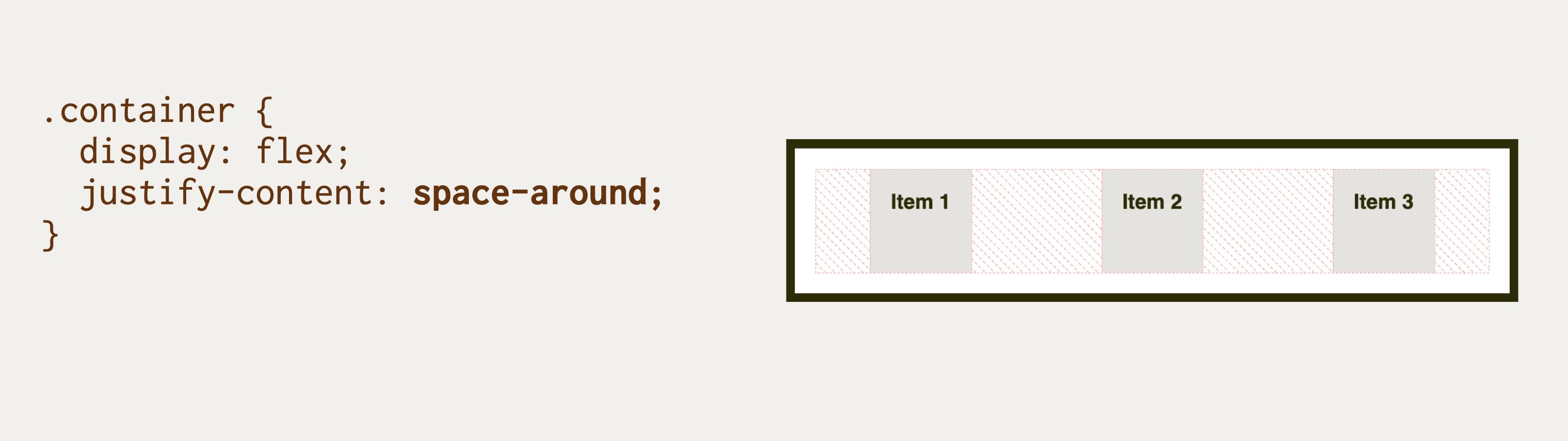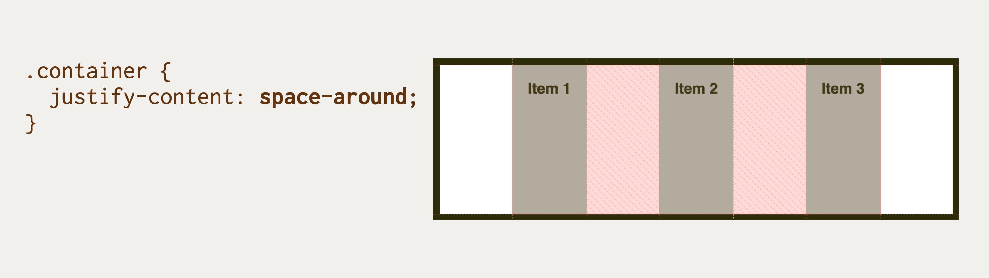 Volné místo se rovnoměrně rozdělí mezi položky, přičemž první a poslední je zarovnaná s hranou kontejneru.space-around