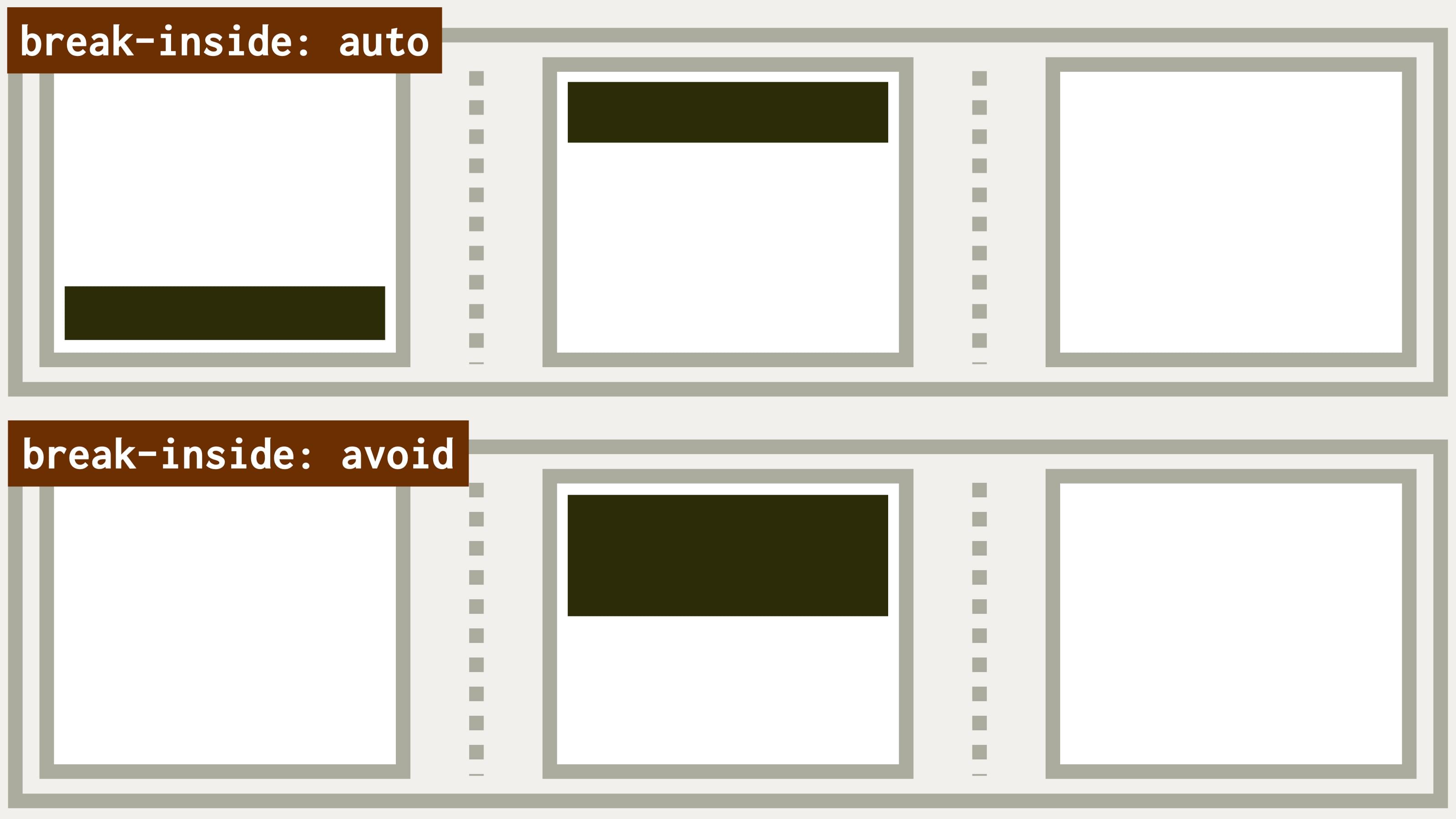 Vlastnost break-inside můžeme použít k vynucení nebo zakázání zalomení uvnitř prvku. V kontextu vícesloupcového rozložení jsou možné tyto hodnoty: