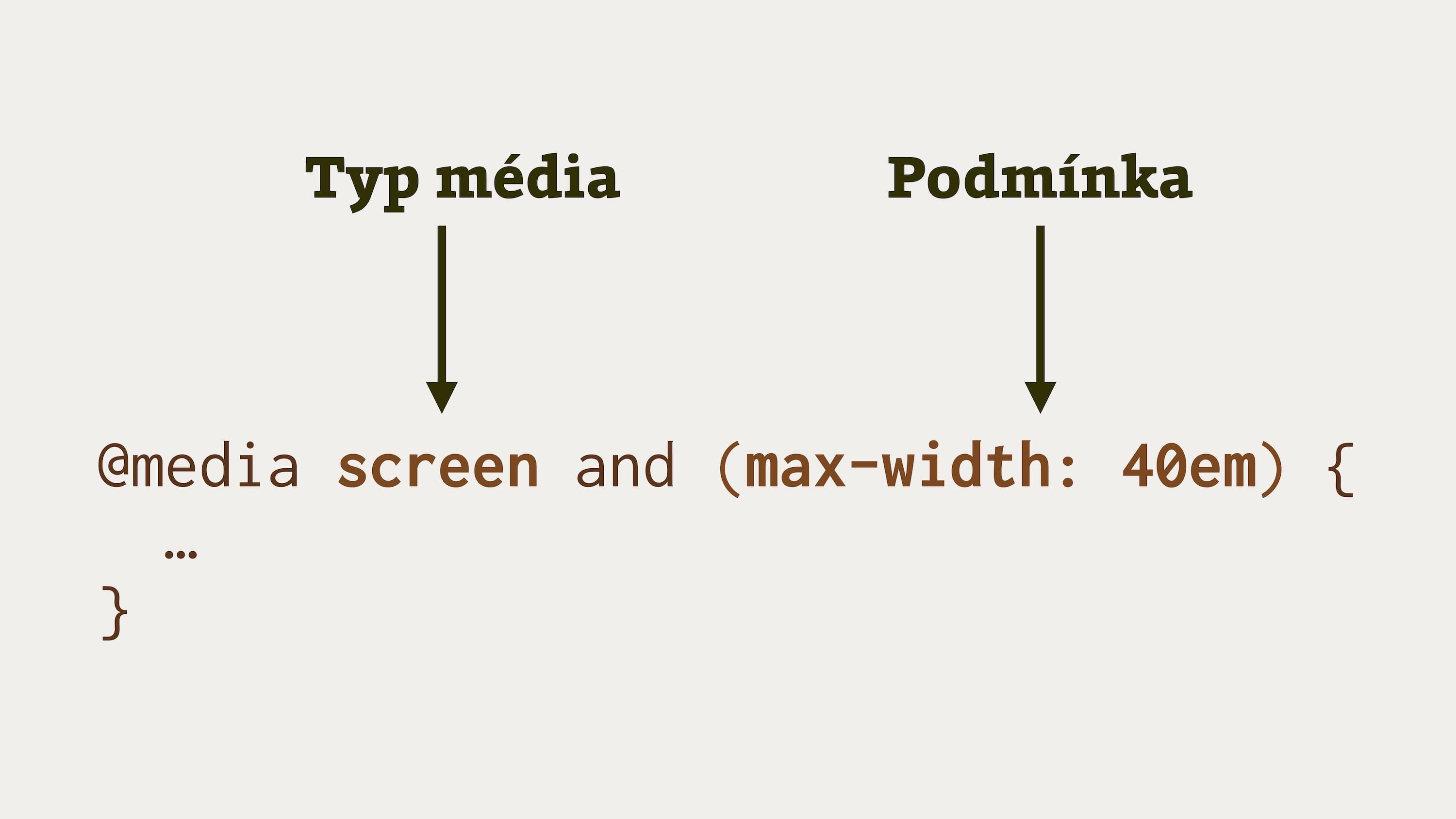 Uvedená podmínka se vyhodnotí jako pravdivá, když si uživatel stránku prohlédne na zobrazovacím médiu o šířce viewportu do 40em