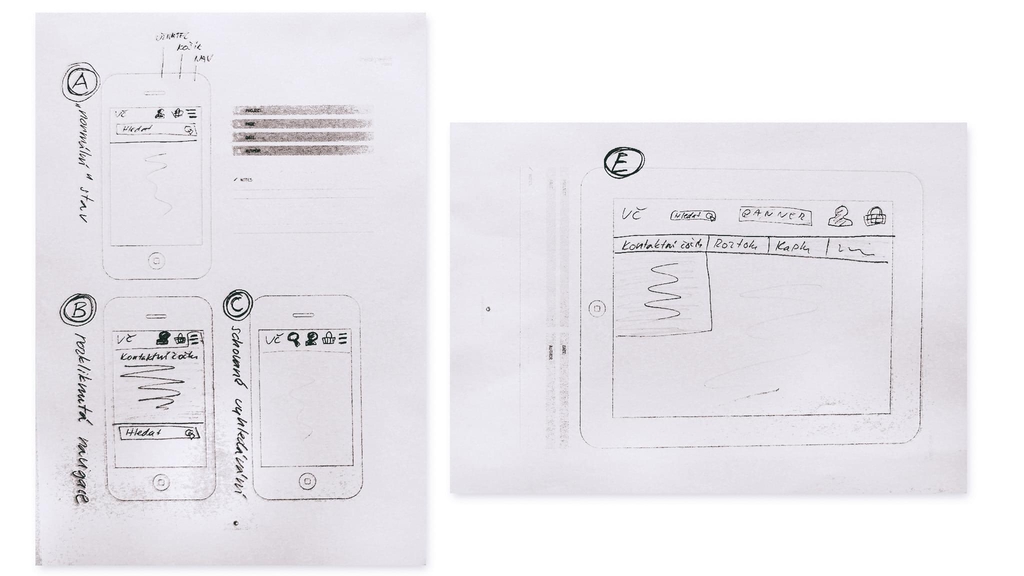 Při skicování mobilního rozhraní jsme omezení plochou. Uživatelské rozhraní pak přirozeně redukujeme na to nejpodstatnější. K přípravě verze pro větší displeje často stačí jen použít běžné techniky responzivního designu: zvětšení nebo mírné přeskládání elementů.
