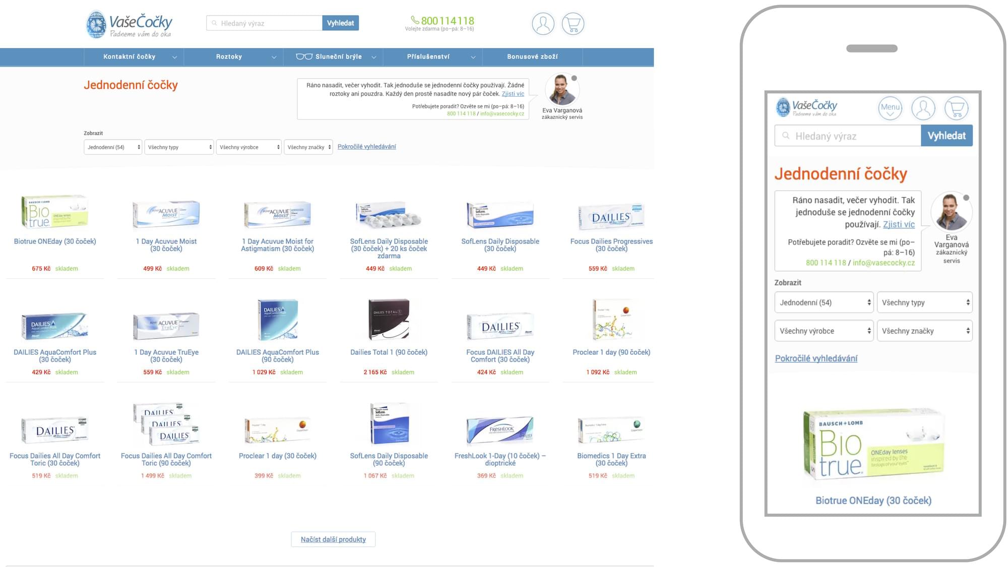 Na druhé straně spektra stojí Maternia, provozovatel e-shopů jako VašeČočky.cz nebo Lentiamo.co.uk a můj vážený klient. Tam se k zásadním změnám rozhodli už při zvažování výroby speciální mobilní verze.