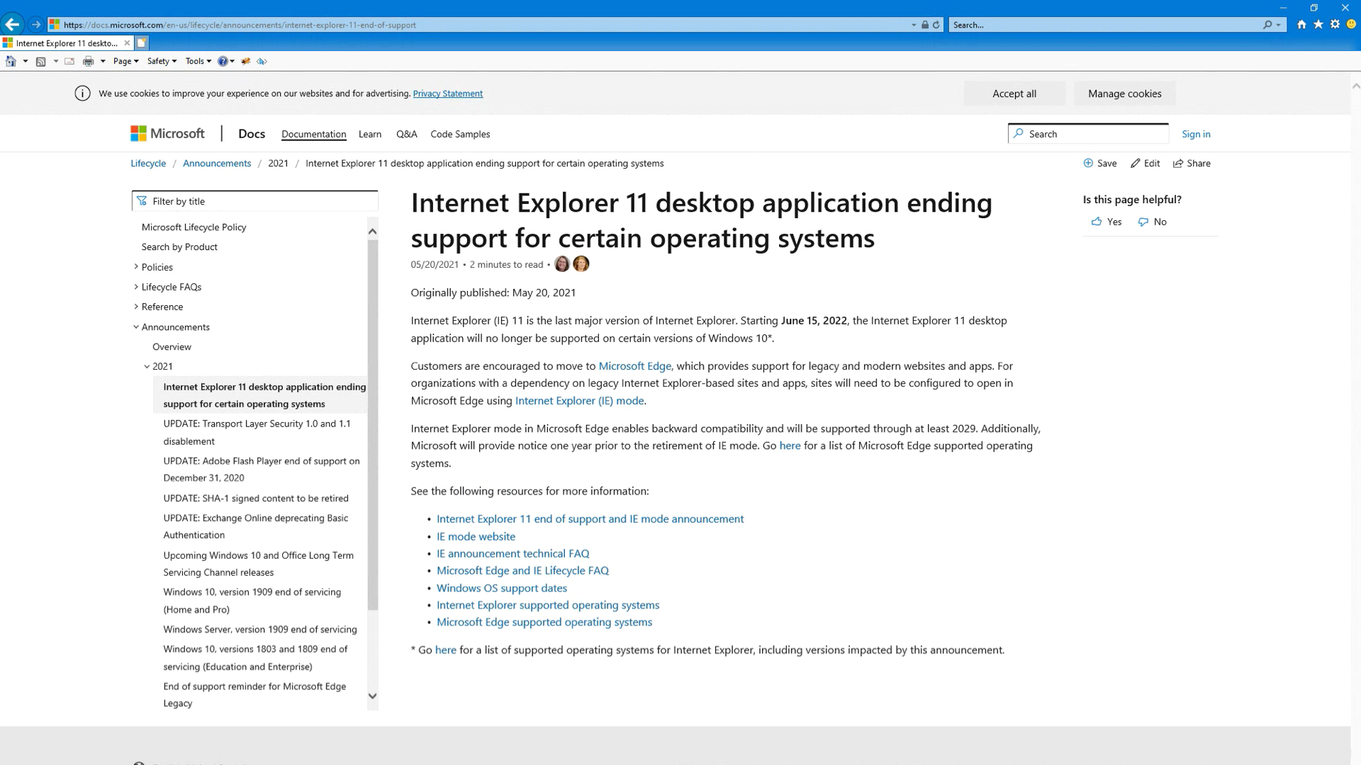 Oficiální ukončení podpory mají v Microsoftu naplánované na polovinu června 2022.