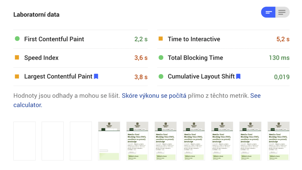 Pravděpodobně se v přehledu „Data pole“ dozvíte, že váš web patří mezi ty „pomalé“. Netřeba panikařit, takových webů je většina. Nechci to ale snižovat – nějaká ta optimalizace rychlosti webu s červenými čísly rozhodně prospěje.