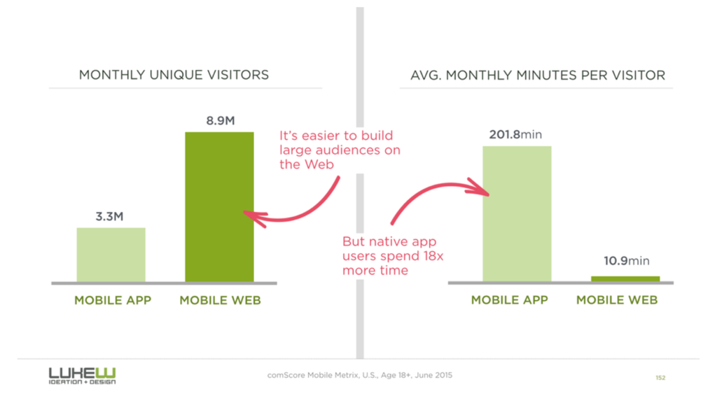 „Reach (web) vs. Rich (native) OR why you want both.“ Zdroj: Luke Wroblewski na Twitteru. vrdl.in/8lh4f