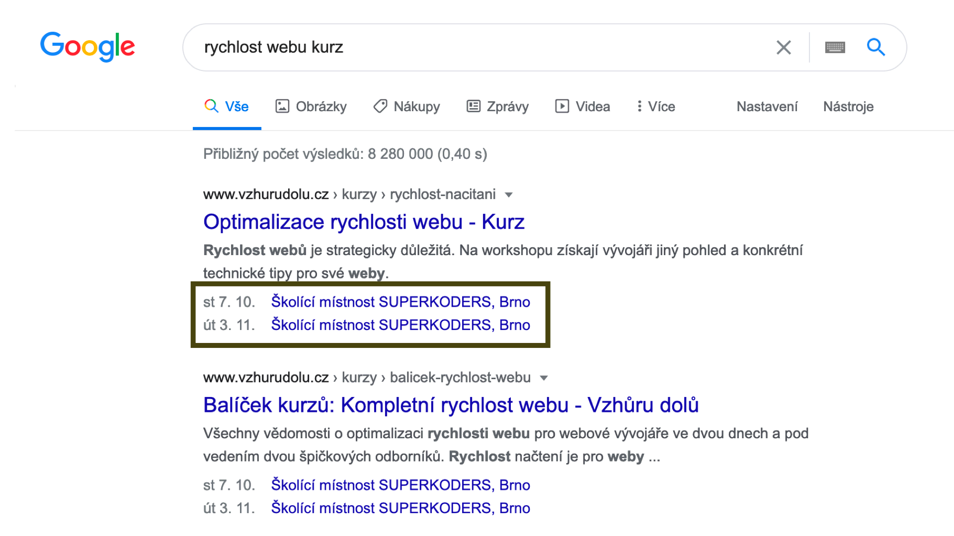 - Test rozšířených výsledků vám velmi pomůže, protože je dostupný i bez Search Console.