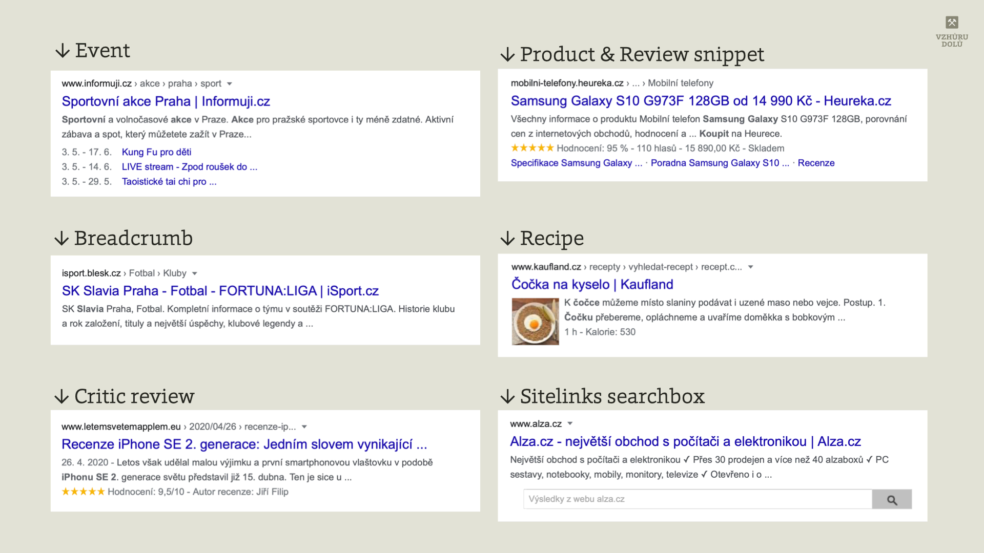 Obrázek: Některé z typů strukturovaných dat, které lze používat na českém Googlu.