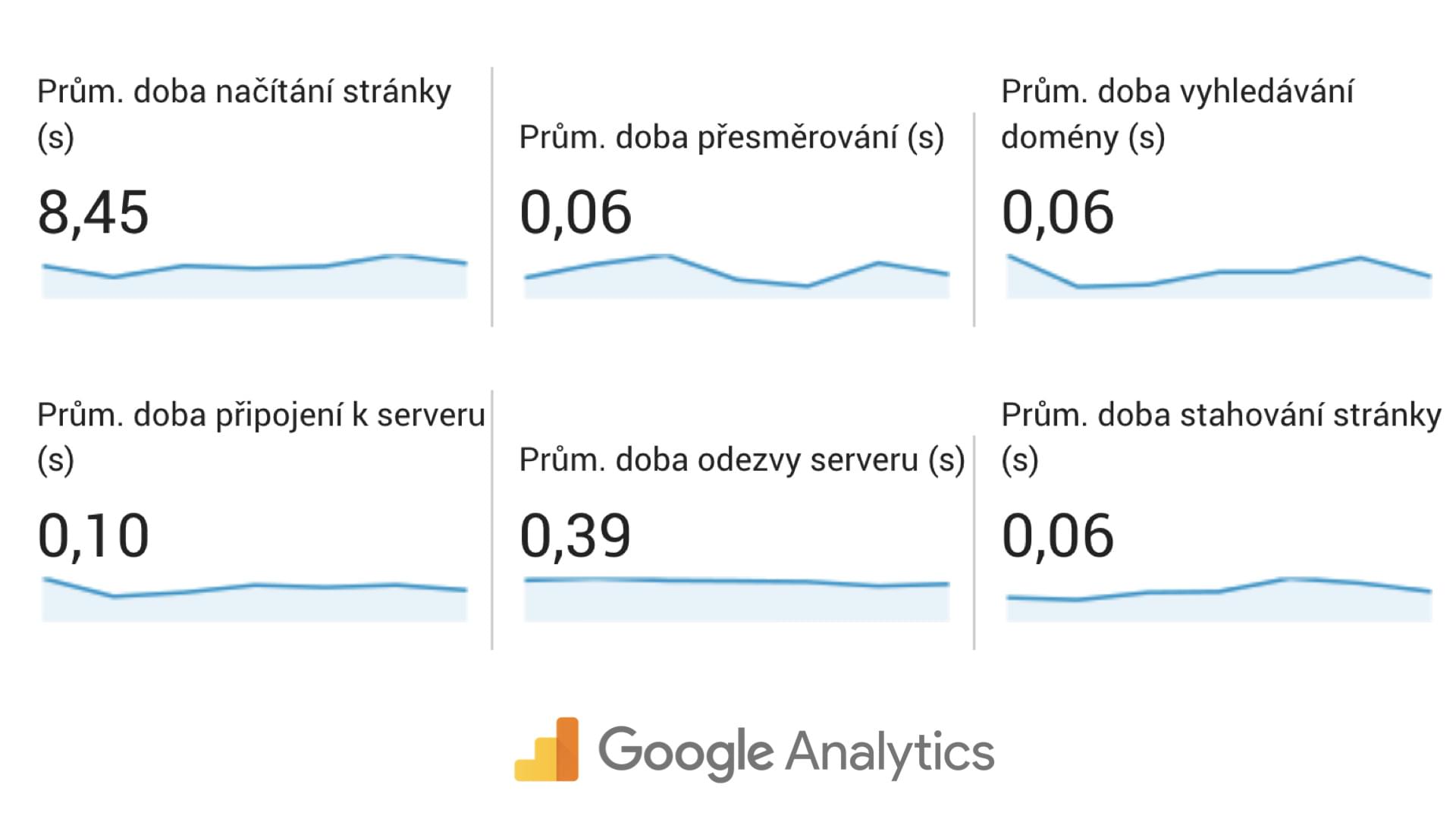 To je fajn, ale Analytics ukazují jen backendový, síťový čas a celkovou dobu načtení. A jak už jsem říkal – tyhle metriky nepřeceňujme.