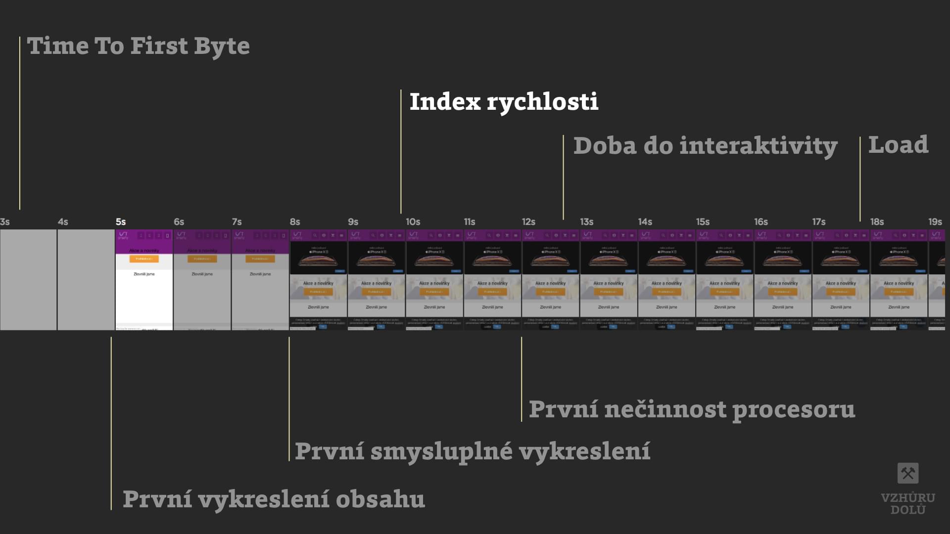 Speed Index je známý především z WebpageTest.org. Nástroj Lighthouse ukazuje podobnou veličinu Perceptual Speed Index.