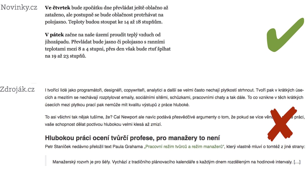 Vypadají triviálně, ale weby jsou jich plné. Příliš dlouhé řádky, špatný kontrast a nesprávné znaky.