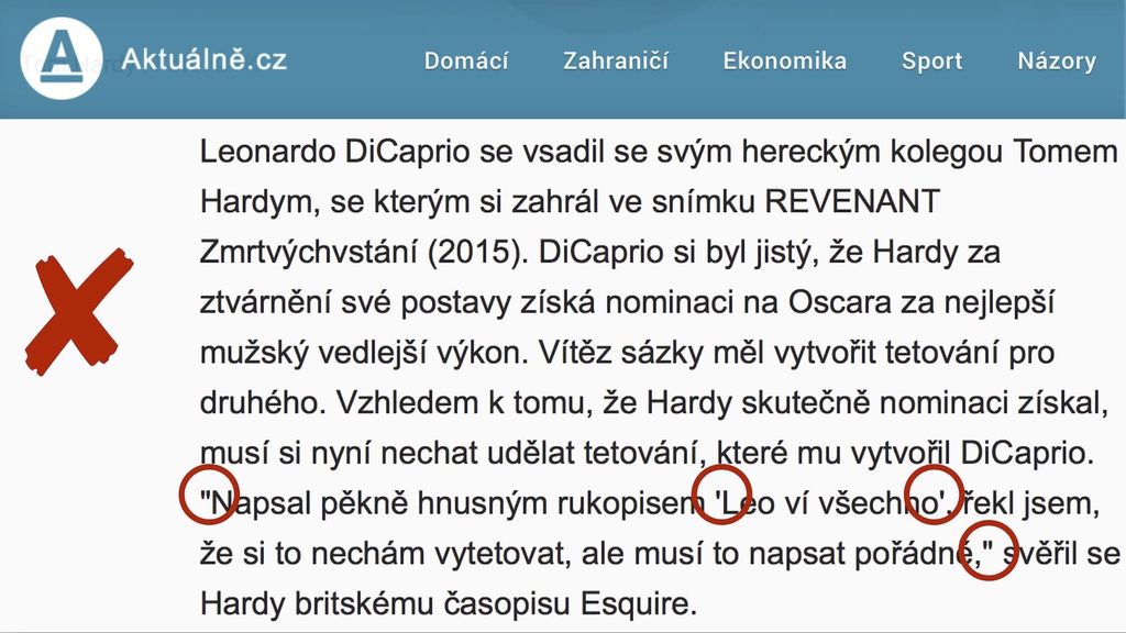 Aktuálně.cz používá nesprávné znaky